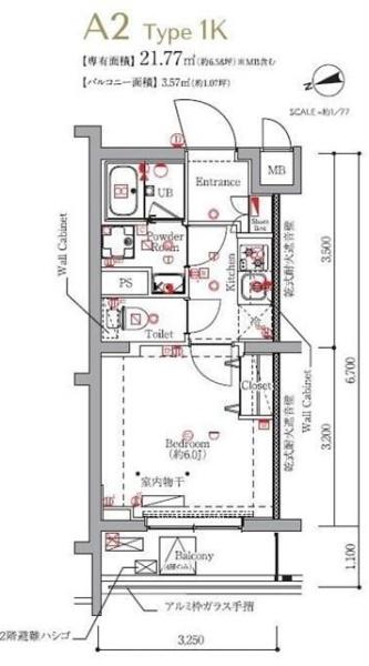 | 間取り | 1K | 専有面積 | 21.77m² |